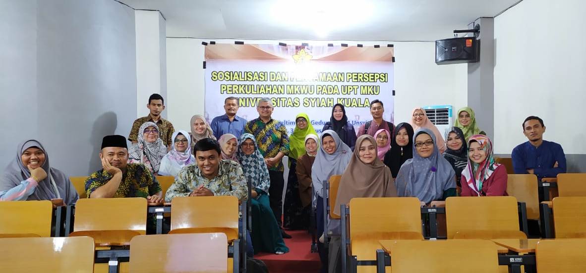 Dalam rangka menyambut masa perkuliahan Semester Ganjil Tahun Akademik 2019/2020 Unit Pelaksana Teknis Mata Kuliah Umum (UPT. MKU) Universitas Syiah Kuala menyelenggarakan sosialisasi dan persamaan persepsi kepada dosen pengajar Mata Kuliah Wajib Umum (MKWU) yang dikelola UPT MKU Jumat, 30 Agustus 2019.